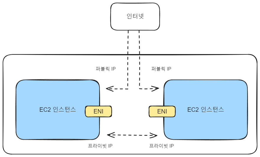 주요 요소들은 VPC, 네트워크 인터페이스, IP 주소.